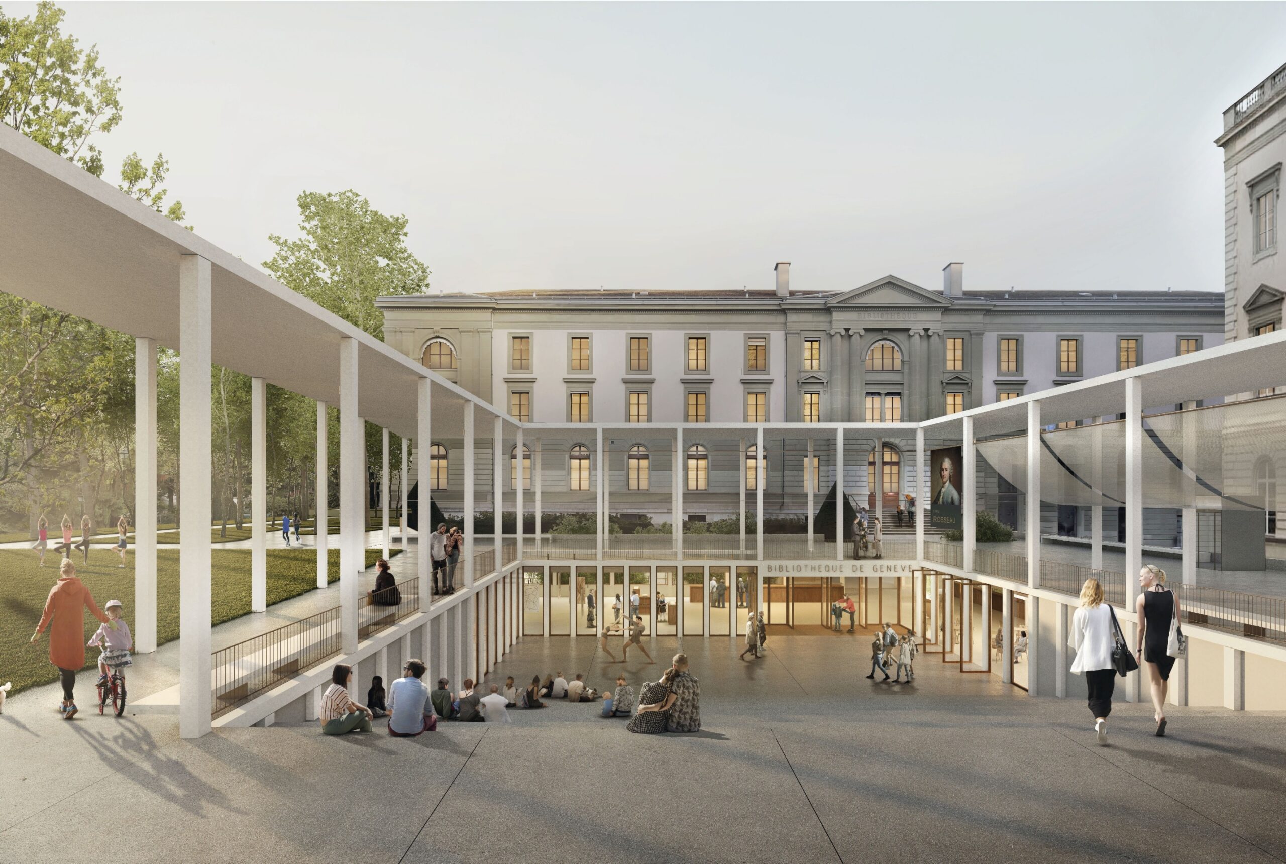 The Bibliothèque de Genève sits within the historic Bastions district, where the city’s defensive past, academic institutions, and public spaces intersect. Once part of Geneva’s 16th–17th century fortifications, the site was transformed into the Promenade des Bastions in the 19th century. Today, the library forms a coherent neoclassical ensemble with the University’s central building and the former museum, arranged around a central courtyard. This space acts as an “urban room,” linking architecture and landscape while organizing access, movement, and civic identity. The project focuses on restoring the building’s original spatial clarity while adapting it for contemporary use. Previous alterations had obscured key volumes, so the intervention reintroduces double-height spaces, vertical continuity, and natural light. Historic elements are preserved, while modern systems and updated circulation are carefully integrated. The result balances heritage and innovation, reinforcing the library’s role as a cultural landmark and an active public space.