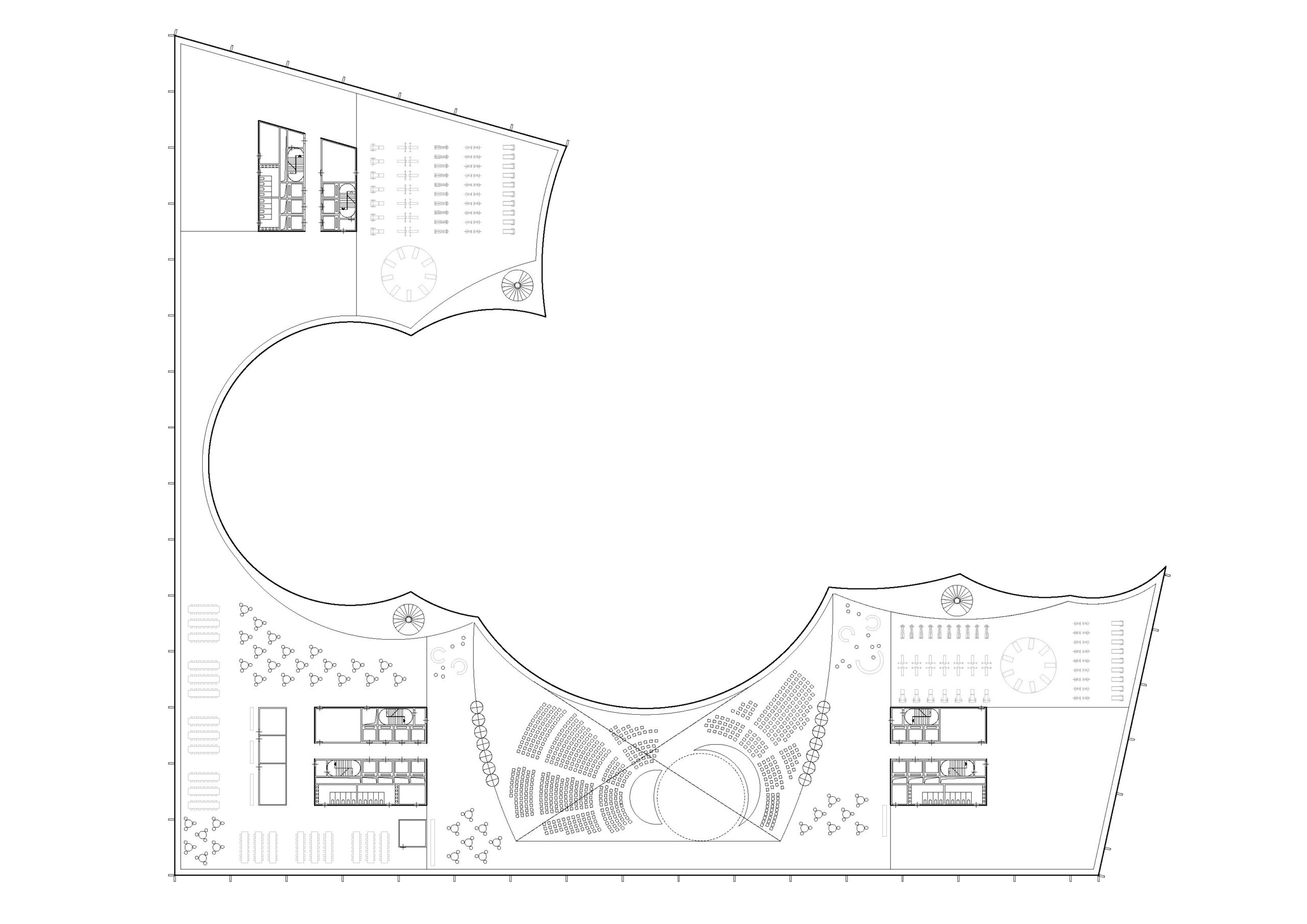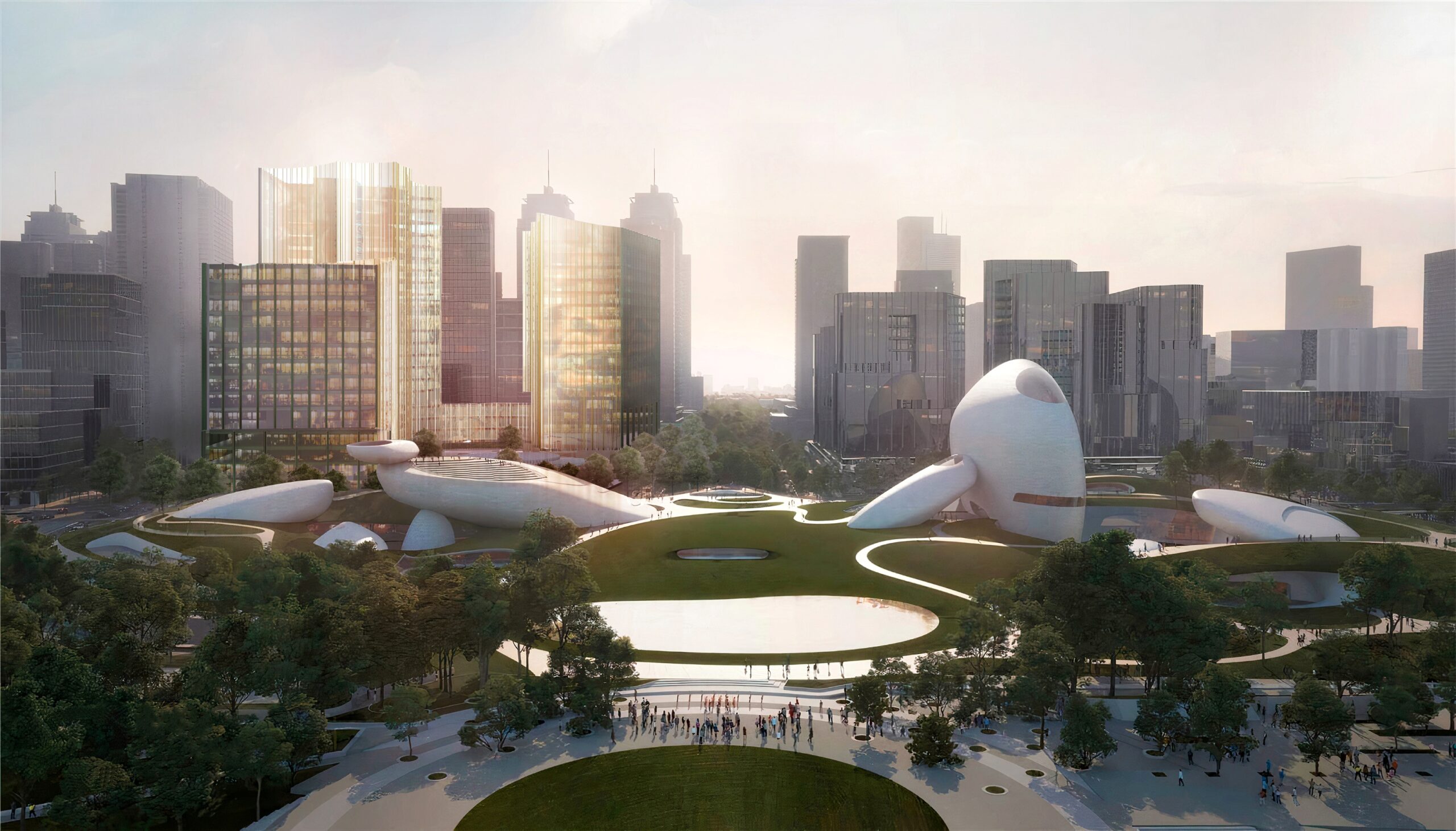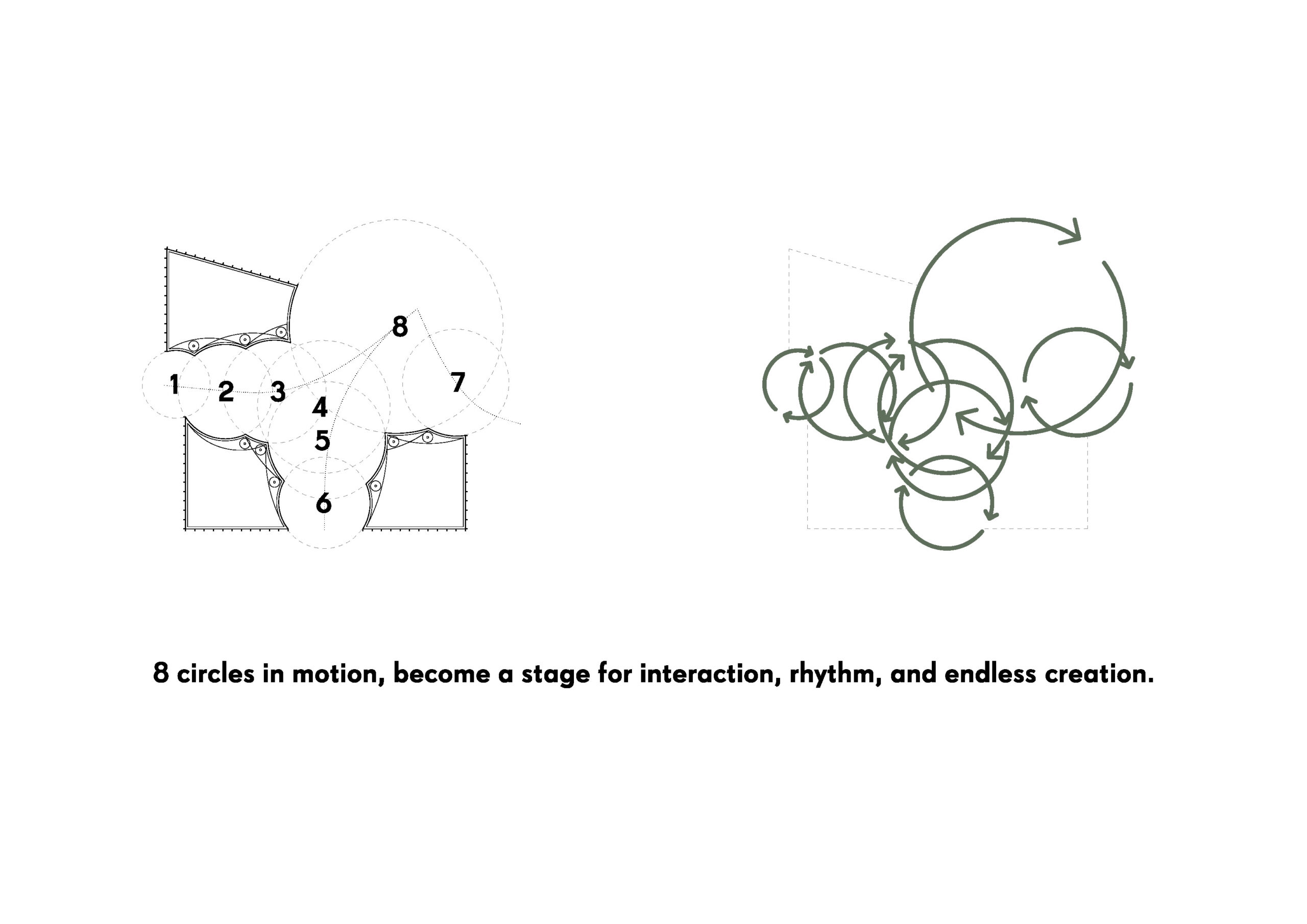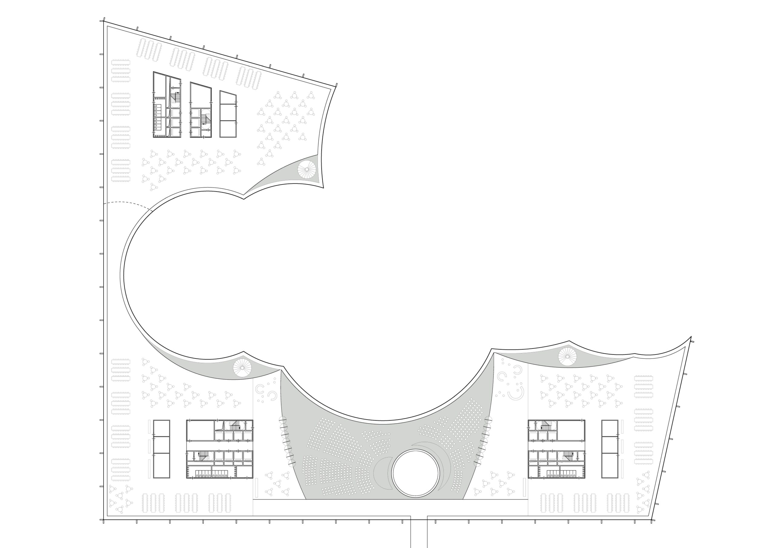 The project proposes not another tower on the waterfront of Shenzhen Bay, but a new urban plaza an open void that becomes a civic landmark between the China Huarun Building and Raffles Shenzhen Hotel. Positioned on the central axis of the bay and adjacent to the new Culture Park and metro station, the intervention establishes a gateway between nature and city, forming a transition between the tropical landscape and the dense skyline of Houhai. Rather than composing separate podium and towers, the scheme unifies the complex into a single sculpted volume generated from the extrusion of eight interlocking circles. This geometry carves a concave interior plaza, an embracing public void that becomes the symbolic heart of the project. The exterior façade aligns with the orthogonal urban grid, while the inner curvilinear façade creates a dynamic, reflective spatial experience. The result is a singular architectural figure that transforms digital symbolism into physical space, establishing a new urban identity for Shenzhen’s waterfront.