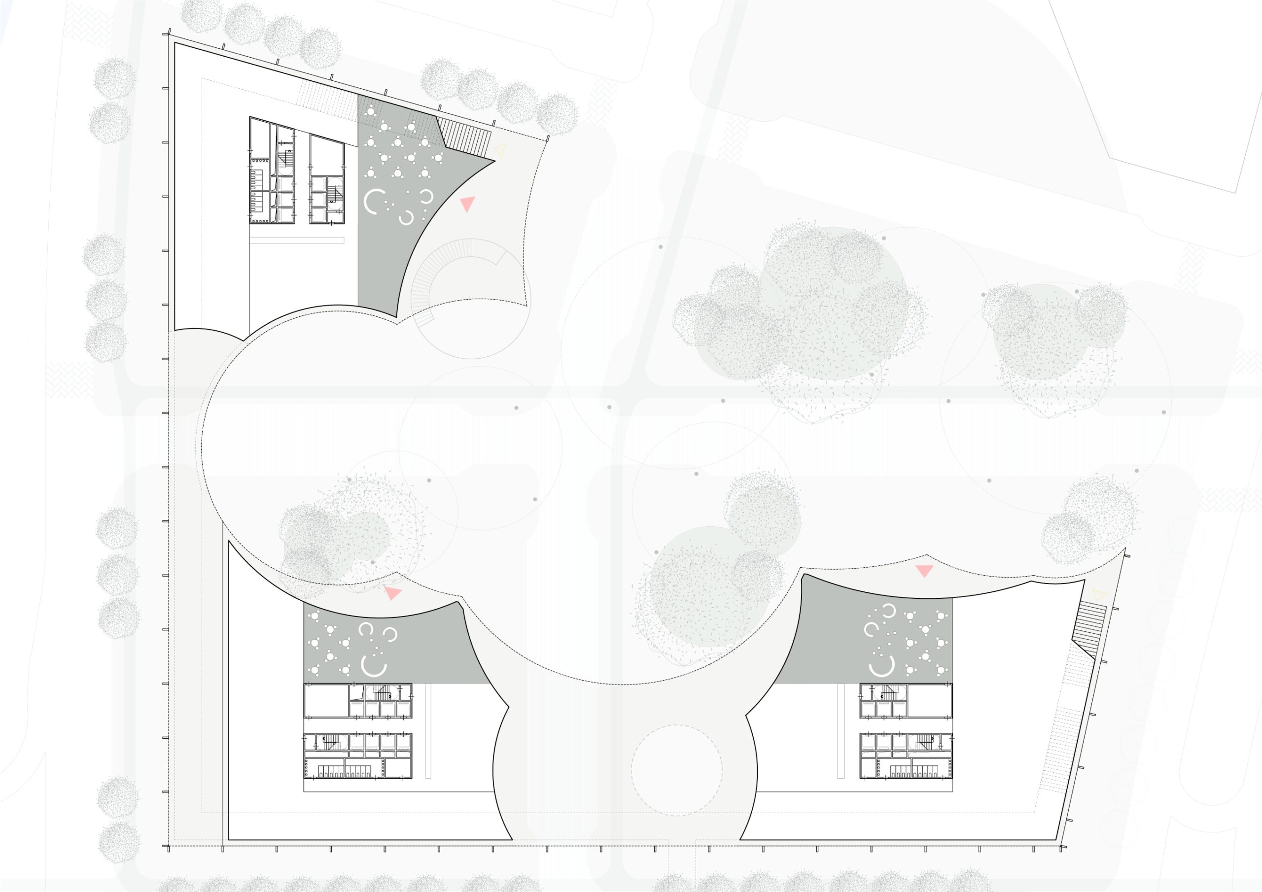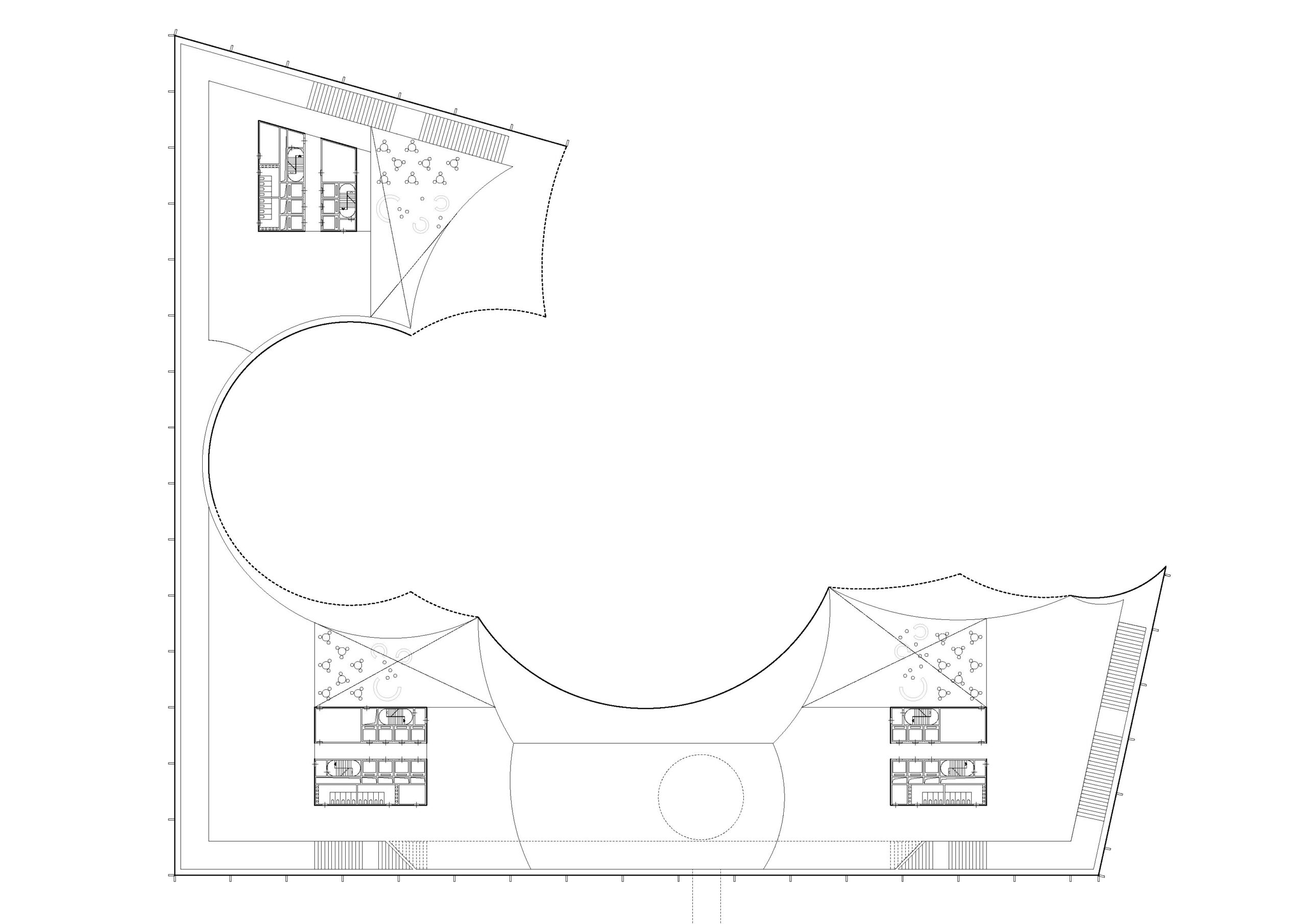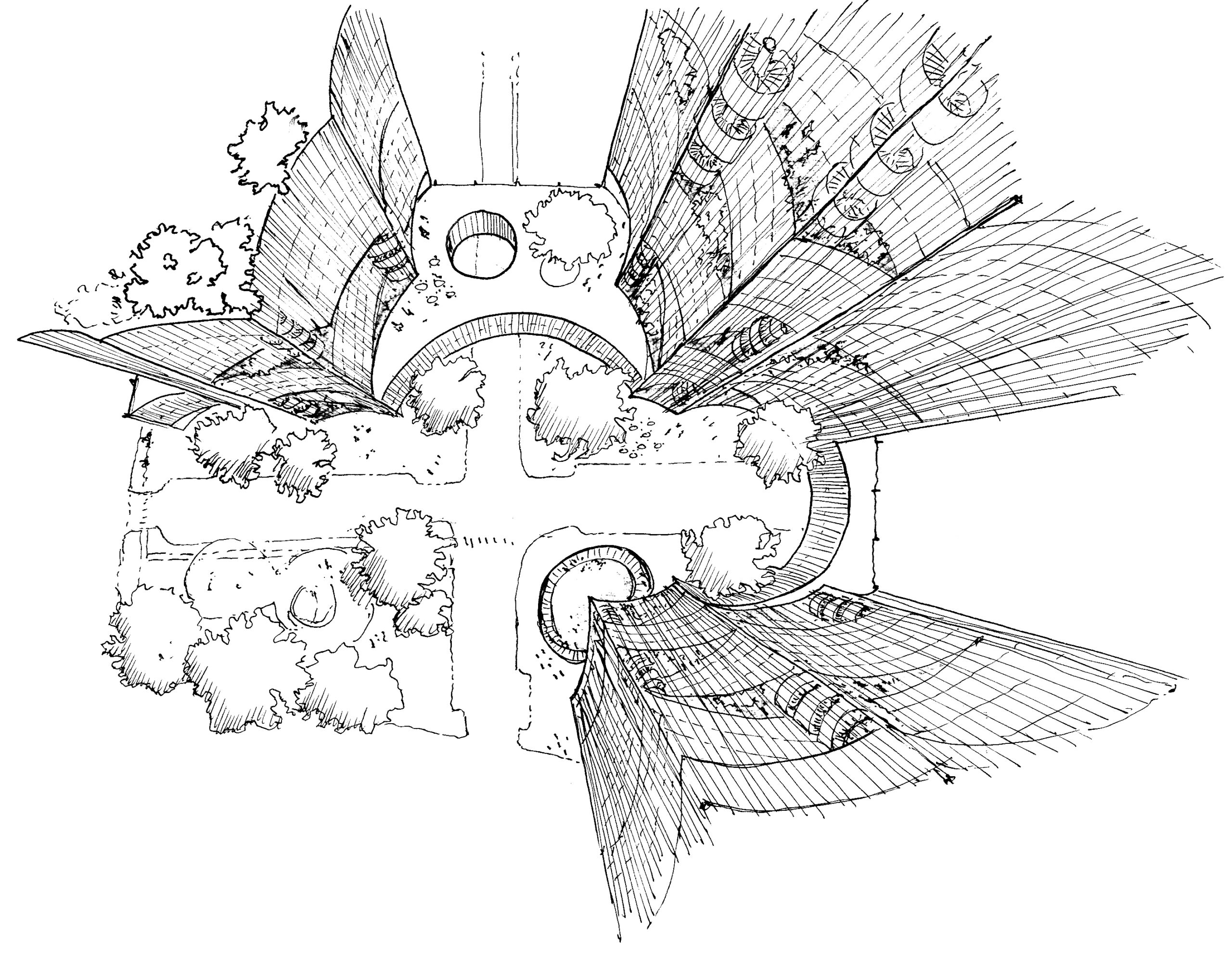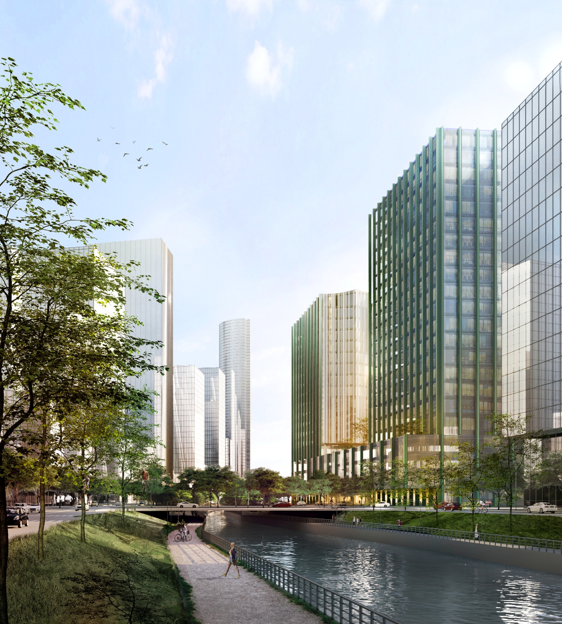The project proposes not another tower on the waterfront of Shenzhen Bay, but a new urban plaza an open void that becomes a civic landmark between the China Huarun Building and Raffles Shenzhen Hotel. Positioned on the central axis of the bay and adjacent to the new Culture Park and metro station, the intervention establishes a gateway between nature and city, forming a transition between the tropical landscape and the dense skyline of Houhai. Rather than composing separate podium and towers, the scheme unifies the complex into a single sculpted volume generated from the extrusion of eight interlocking circles. This geometry carves a concave interior plaza, an embracing public void that becomes the symbolic heart of the project. The exterior façade aligns with the orthogonal urban grid, while the inner curvilinear façade creates a dynamic, reflective spatial experience. The result is a singular architectural figure that transforms digital symbolism into physical space, establishing a new urban identity for Shenzhen’s waterfront.